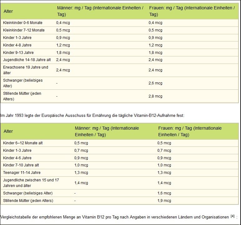 Aus diesem Grund ist es unter ärztlicher Aufsicht erforderlich, den B12-Gehalt im Körper zu überprüfen und einen Fachmann zu den geeigneten Behandlungsmethoden zu befragen.