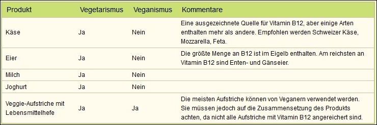 Eines der wichtigsten Vitamine für Vegetarier, da es am meisten in tierischen Produkten enthalten ist.